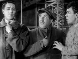 Loss, Kratsov (an amateur detective), and Gussev (a Red soldier) make the flight to Mars in in Aelita, The Queen of Mars.(© 1991 Kino International Corporation. All rights reserved.)