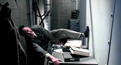 Sam struggles for desk space in Brazil.(© 1985 Embassy International Pictures NV. All rights reserved.)