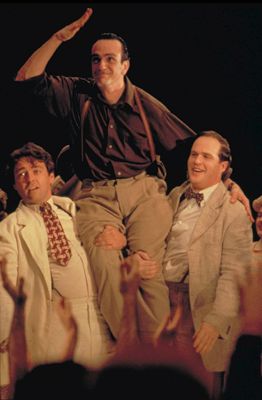 Orson Welles (Angus Macfadyen), Marc Blitzstein (Hank Azaria), and John Houseman (Cary Elwes) in Cradle Will Rock.(© 1999 Touchstone Pictures. All rights reserved.)
