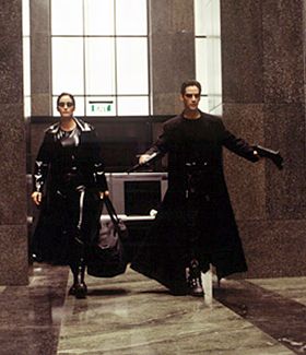 Keanu Reeves and Carrie-Anne Moss in The Matrix.(© 1999 Warner Bros. All rights reserved.)
