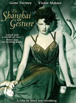 video review by Gary Johnson The Shanghai Gesture long ago achieved cult movie status. Thanks to the outrageous head gear adorning Ona Muson as the proprietor of a gambling den in Shanghai; thanks to the blatantly sexual desires of Gene Tierney as the gambling-addicted daughter of a wealthy industrialist; thanks to the degradation that Tierney endures; thanks to the absurd dialogue that simply has to be heard to be believed--for these reasons and many more-- The Shanghai Gesture has earned a niche in the pantheon of exotic cinema. After working with Marlene Dietrich on such marvelously composed vehicles as The Scarlet Empress, Blonde Venus, and Morocco, director Josef von Sternberg's career began to founder. By 1941, the year The Shanghai Gesture was released, Sternberg was directing fewer and fewer movies. Over the next decade, his only major directing stint would be as uncredited assistant director on David O. Selznick's Duel in the Sun. With Dietrich, however, his Hollywood movies found a near-perfect blend of visual sumptuousness and melodramatic intensity. The Scarlet Empress, for example, is one of the most beautiful movies ever made--and one of the most compelling portraits of the personal sacrifices that women must make when thrust into political office. But without Dietrich, Sternberg's movies became hollow artifices. The Shanghai Gesture contains some hints of Sternberg's previous work, but most of his efforts are undone by poor casting, bad acting, and his own weak screenplay (based upon a stage play by John Colton). Gene Tierney plays the spoiled child of an industrialist, Sir Guy Charteris (Walter Huston). One night in Shanghai, Poppy (Tierney) stumbles upon the gambling den run by Mother Gin Sling (Ona Munson). Sporting one of the most outrageous hairdos in the history of cinema (huge swirls of hair arc away from her head like the frozen arms of an octopus), Mother Gin Sling lords over the movie as Shanghai's leading proponent of vice. Industrialists such as Sir Guy Charteris hope to run her out of business and then claim her land. And the government likes his plan because his efforts will clean up Shanghai's most notorious district. Mother Gin Sling meets the government dictum without wavering: "Every so often Shanghai decides to clean itself like a swan in a muddy lake," she says. "I shall not move and I certainly shall not close." She discovers Charteris' Achilles heal once Poppy is revealed as his daughter. Mother Gin Sling then helps ensure that Poppy falls under her control--which happens relatively easily. Poppy, as it turns out, can't resist gambling and the exotic pleasures offered by the gambling hall: "The other places are like kindergarten compared to this," she says, enraptured by the hall's smoky, crowded atmosphere. "It smells so incredibly evil … I didn't think such a place existed except in my own imagination."