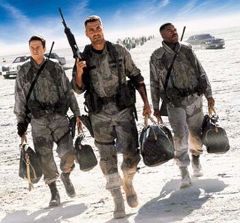 Mark Wahlberg, George Clooney, and Ice Cube in Three Kings.(© 1999 Warner Bros. All rights reserved.)