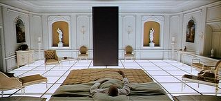 After Dave Bowman reaches the third monolith, he finds himself aged and in strange new surroundings. Finally, a fourth monolith appears. (Photo credit: © 1968 Warner Bros. All rights reserved.)