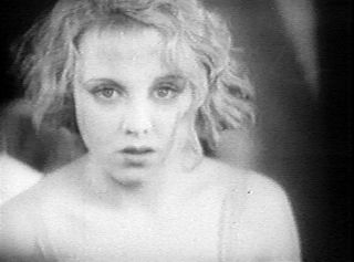 After she strikes the jester portrait, Alice turns away from the painting and walks directly towards us.(Photo credit: © 1929 British International Pictures.)