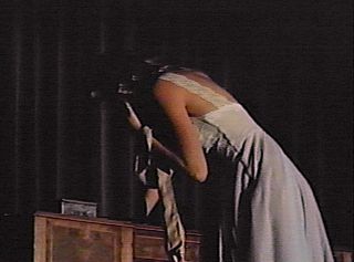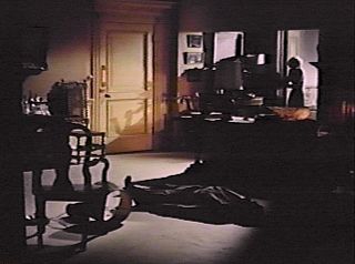 After the stabbing, Margot picks up the phone. Her husband is still on the line. She tells him about the attack, pleads with him to hurry home, and then leaves the room.(Photo credit: © 1954 Renewed © 1981 Warner Bros. All rights reserved.)
