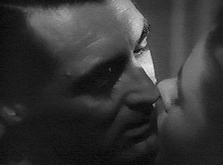For Devlin to "see" Alicia, she must disappear, leaving him waiting for five days at their rendezvous point. Without his audience, he has no one to perform his heartlessness for. He finally realizes that she may be in danger. In a manly fashion, Devlin goes to the Sebastian house to rescue her. Alicia's marriage bed has become a sacrificial altar where she lies deathly ill. But the camera's focus is on Devlin, the handsome rescuer who tells Alicia he loves her: "I couldn't see straight or think straight. I was a fat-headed guy, full of pain. " His words of love, as well as his handsome image, revive her, not the notorious woman--but Alicia. In true heroic fashion, Devlin carries her out, sadistically leaving Alex to be killed by fellow Nazi agents. "You must take me. They're watching me," pleads Alex. "That's your headache," says Devlin.