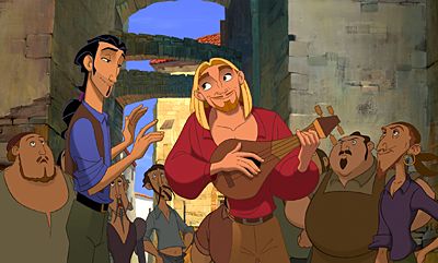 Tulio and Miguel try to con their way out of trouble when they are caught cheating at dice in The Road to El Dorado.(© 2000 Dreamworks L.L.C. All rights reserved.)