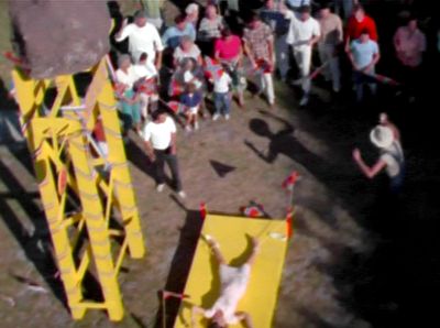 A victim awaits her fate beneath the rock drop in Two Thousand Maniacs!(© 1964 Box Office Spectaculars. All rights reserved.)