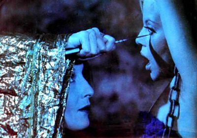 A female vampire threatens her victim in Requiem for a Vampire.(© 1999 Salvation Films Ltd. All rights reserved.)