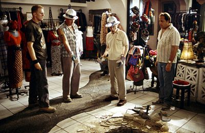 Michael Rapaport, Tony Darrow, Woody Allen, and Jon Lovitz in Small Time Crooks.(© 2000 DreamWorks LLC. All rights reserved.)