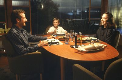 Henry and Monica Swinton (Sam Robards and Frances O'Connor) have dinner with their new robotic son David (Haley Joel Osment) in A.I. Artificial Intelligence.(© 2001 Warner Bros. and Dreamworks LLC. All rights reserved.)