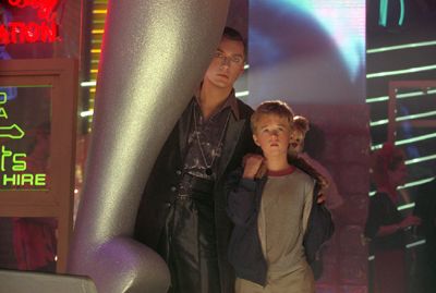 Gigolo Joe and David take in the sights at Rouge City in A.I. Artificial Intelligence.(© 2001 Warner Bros. and Dreamworks LLC. All rights reserved.)