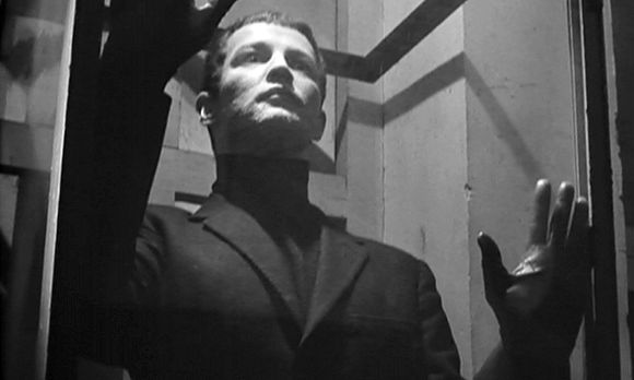 The robotic monster (Hugo Blanco) waits in a booth for Dr. Fisherman's orders in Dr. Orloff's Monster.(© 1964 Eurocine. All rights reserved.)