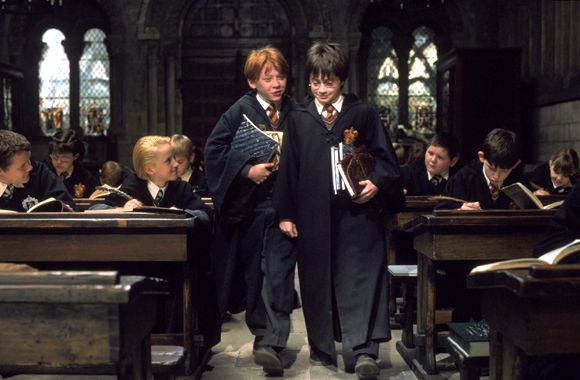 Ron (Rupert Grint) and Harry (Daniel Radclffe) in Harry Potter and the Sorcerer's Stone.(© 2001 Warner Bros. All rights reserved.)