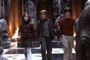 These early scenes flirt dangerously with making Harry a suffering innocent. But when Hagrid (a near giant of a man) enters to whisk Harry away to Hogwarts School of Witchcraft and Wizardry, the movie instantly climbs to a different level altogether. We’re soon treated to a trip to a hidden shopping district (accessible from the wall of a tavern’s restroom) where a witch or wizard can satisfy all of their witchcraft or wizardry needs -- brooms, wands, potions, you name it. This environment is wonderfully realized with sets that tilt and lean. Nothing is square. All lines are twisted in a delightfully kinetic display of set design. And the movie continues to weave its spell in the following episode set at a train station, where Hagrid gives Harry a ticket and then departs. The only trouble is the ticket says "Platform 9¾" -- which doesn’t seem to exist!