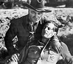 To help compensate for Boyd’s shortcomings as an action star, the scripts gave Hopalong a younger, more impetuous sidekick. Jimmy Ellison took these action duties for the first ten films in the series before he left for more prominent roles at RKO. Russell Hayden then took over for the next 27 series entries. And balancing out the cast, George "Gabby" Hayes played the comic relief. Hayes’ character actually dies in the first film, but audience reaction forced the scriptwriters to soon write him back into the series under a different character name, Windy Halliday, in the third film, Bar 20 Rides Again.