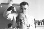 Far from O Brother’s farcical muggings, The Man Who Wasn’t There projects a stone-faced sense of despair, much of it emanating from Crane, who narrates the action in a defeated drawl. As the title blatantly states, Crane is a nobody, a man rendered powerless by, well, everything it seems. Life overwhelms him, or rather, has numbed him to the point where he’s equally immune to pain and joy. His souse of a wife, Doris (Frances McDormand), is an accountant at a department store and is having an affair with her boss, Big Dave (James Gandolfini). This doesn’t seem to bother Crane. "It’s a free country," he gathers. By day, Crane is a barber, and he is a good one by all accounts, but as in his private life, he lives in the shadows of others, playing second fiddle to his brother-in-law and barbershop owner, Frank (Michael Badalucco). Ed doesn’t despair about his life. He simply despairs. Referring to the hair he cuts day in and day out, he intones, "It keeps on growing." Half-bored, half-mesmerized, Crane has been hypnotized by his own indifference.
