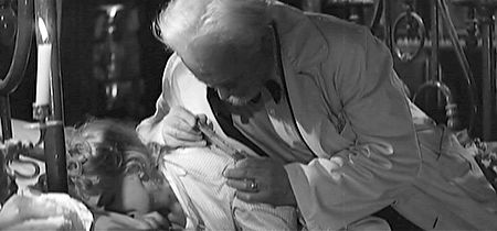 Professor Julien du Grand (Antonie Balpetre) injects a young victim with a tranquilizer in I Vampiri.
