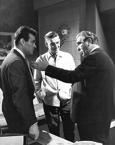 Stuart Whitman, director Guy Green, and Donald Wolfit on the set of The Mark.(Photo courtesy of VCI Entertainment.)