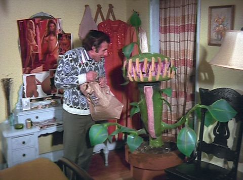 Henry Fudd (Buck Kartalian) finds his talking plant has a voracious appetite in Please Don't Eat My Mother!(© 1985 Valiant International Pictures. All rights reserved.)