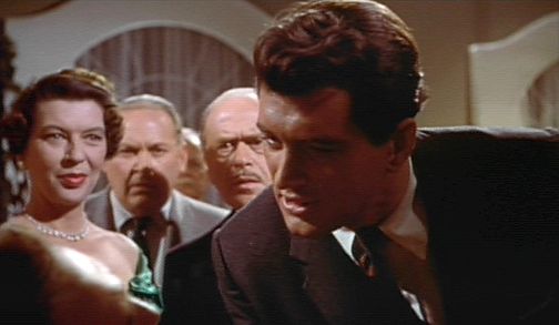 At an elegant party, Ron Kirby (Rock Hudson) gets rough with a man who tries to force a kiss upon Carrie in All that Heaven Allows.(© 1955 Universal Pictures Co. Inc. Renewed 1983 by Universal City Studios, Inc. All rights reserved.)
