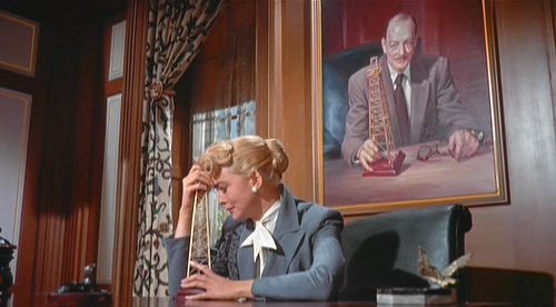 Marylee (Dorothy Malone) grasps the symbol of her father's wealth -- an oil well -- in Written on the Wind.(© 1955 Universal Pictures Co. Inc. Renewed 1983 by Universal City Studios, Inc. All rights reserved.)
